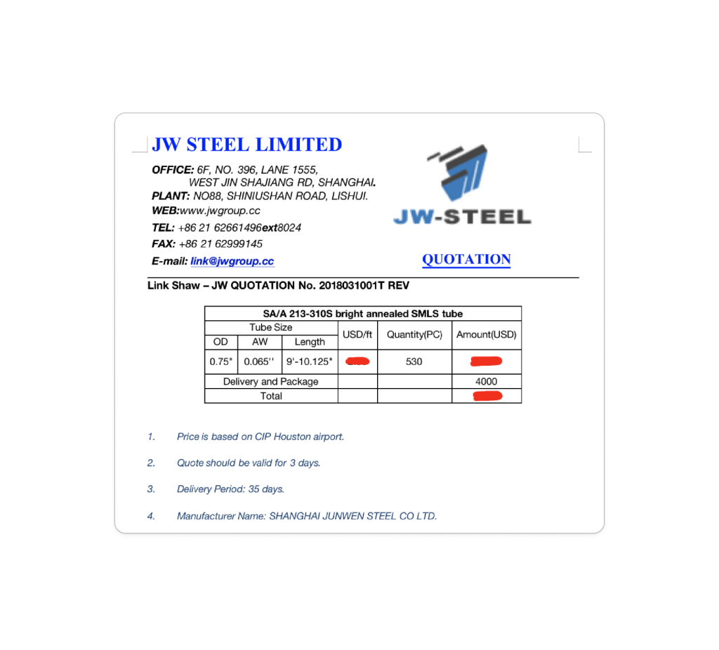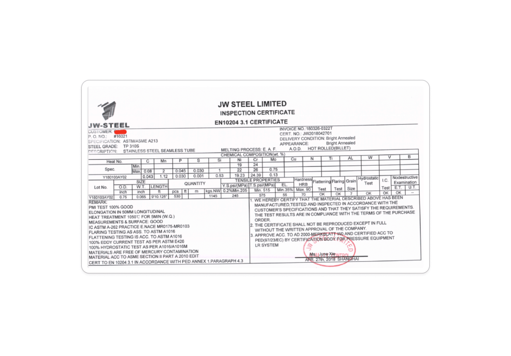 “We received an order for Stainless Steel SA/A 213-310S bright annealed seamless (SMLS) tubes for a customer’s stock in Houston. The customer sent a third-party inspection company, which performed a professional job. We supported them throughout the inspection process.